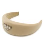 PRADA プラダ トライアングルロゴ カチューシャ ヘアバンド ヘアアクセサリー ナイロン ベージュ シルバー金具 1IH016