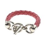 プラダ ブレスレット 1IB350 ピンク ゴールド金具 レザー メタル 中古 アクセサリー トライアングルロゴ 編み込み