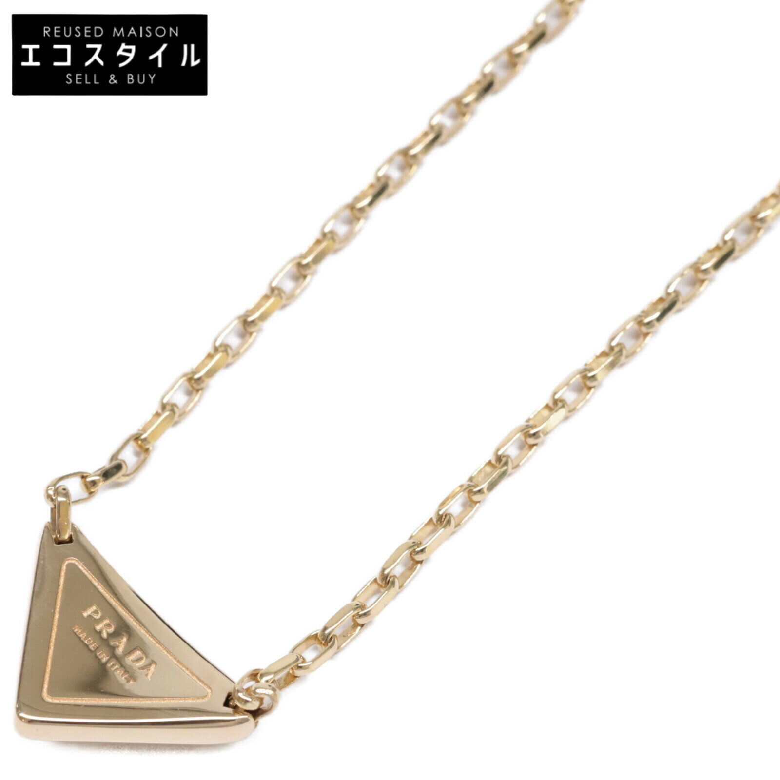 PRADA プラダ 1JCA37 750 スモールトライアングルペンダント付き Eternal Gold ネックレス イエローゴールド レディース 【中古】