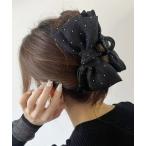 ヘアクリップ 「 Port / ポート 」 オーガンジー ビッグ リボン バンスクリップ ( ストーン付き ) #