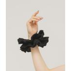 【2点10%OFFクーポン】 クラップカフ リボン サテン フリル ポニーフック ヘアゴム ロールカフ ワンタッチ ヘアアクセサリー