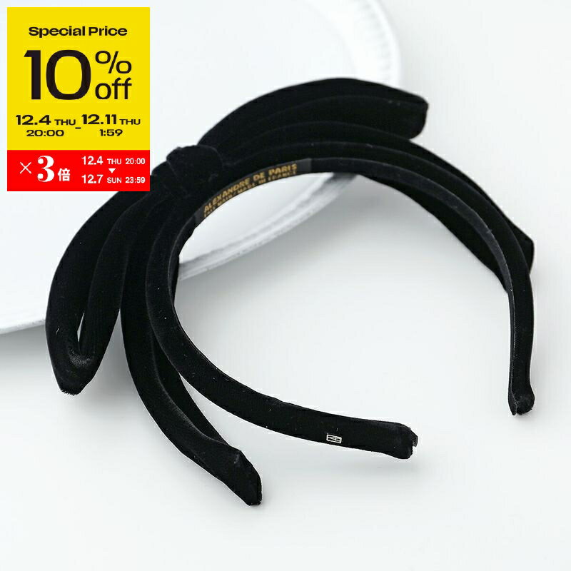【スーパーSALE10%OFF・12/4-20時〜】ALEXANDRE DE PARIS アレクサンドル ドゥ パリ カチューシャ VELOURS DE SOIE THB-18555-10 レディース ヘアバンド ベロア リボン 髪飾り N-NOIR【ss_ten】