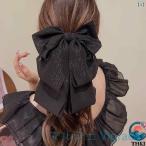 ヘアアクセサリー レディース リボン ヘアピン ブラック ポニーテール用 エレガント