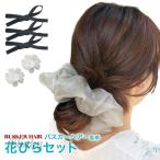 花びらセット シュシュ リボンピン ピアス 3点セット ヘアアクセサリー 韓国 母の日 プレゼント バスカーヘア 結婚式 入学式 フォーマル