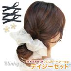 デイジーセット シュシュ リボンピン ピアス 3点セット ヘアアクセサリー 韓国 母の日 プレゼント バスカーヘア 結婚式 入学式 フォーマル