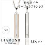 ペアネックレス ペンダント トップ 刻印 アレルギー対応 レディース メンズ サージカル ステンレス わけあり ダイヤモンド スティック 両面 名入れ ネックレス