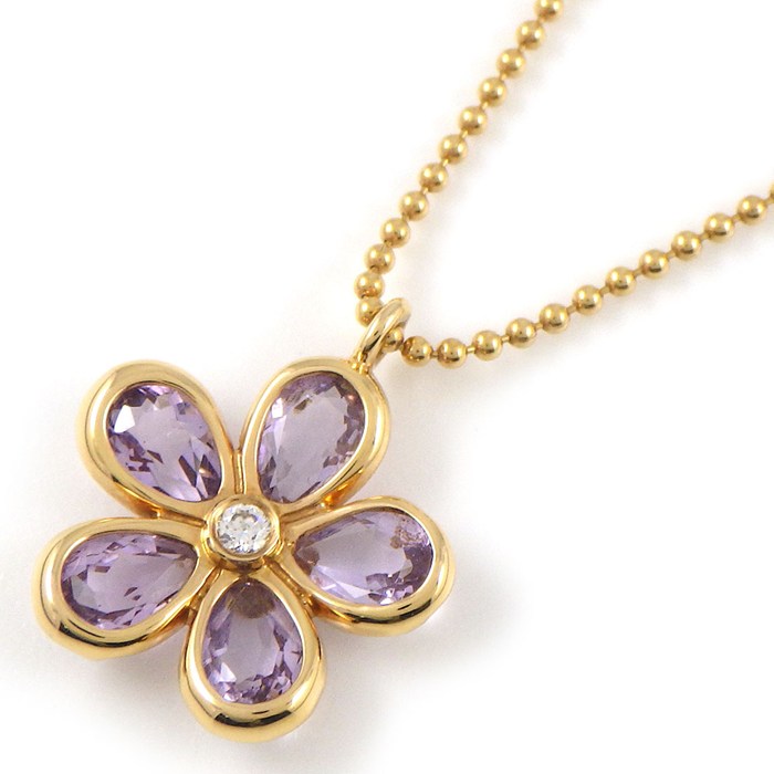 【レビュー1000件記念★対象品3%OFF&5日限定P3倍】 ティファニー Tiffany & Co. ネックレス ガーデンフラワー ボールチェーン 5ポイント ペアシェイプ アメジスト 1ポイント ダイヤモンド K18PG 【中古】