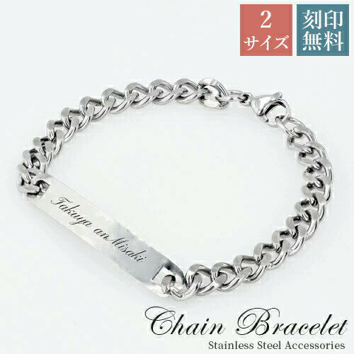 \ブラックフライデー15%OFFクーポン&P5倍/ ステンレスブレスレット 単品 2タイプ ブレスレット 刻印無料 チェーンブレスレット 刻印可能 ペアブレスレット チェーン ブレスレット シルバー色 刻印 名入れ 【在庫限り】