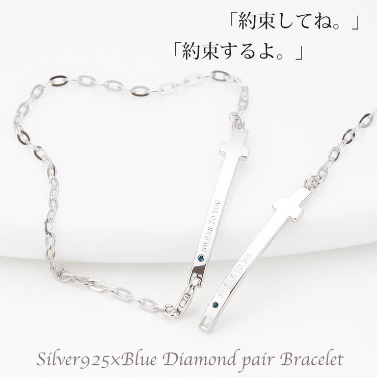【10%OFFクーポン!11/27(木)1:59まで】アクセサリーショップPIENA シルバー925製クロスチェーンペアブレスレット ブルーダイヤモンド カップル 記念日 ギフト 贈り物 十字架 プレート シンプルレディース メンズ セット アクセサリー