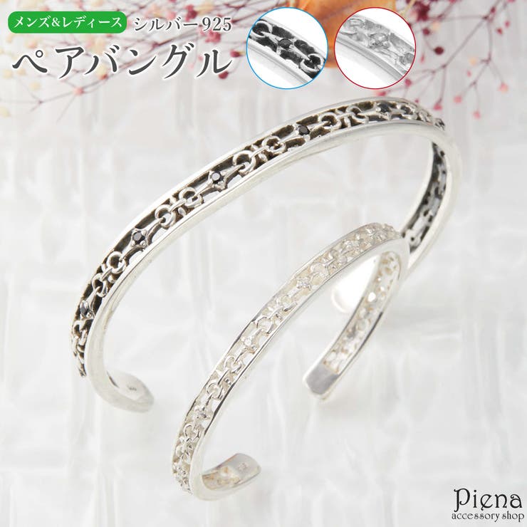 【10%OFFクーポン!11/27(木)1:59まで】アクセサリーショップPIENA ペアブレスレット バングル レディース メンズ シルバー925 キュービックジルコニア 透かし 彫刻 模様 彫り 燻し シンプル お揃い ペア 恋人 彼氏 彼女 おしゃ