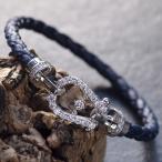 ダイヤモンド ブレスレット メンズ プラチナ Pt900 バックル 革紐 編み込み レザー ネイビー 20cm 1.1カラット 30代 40代 50代 爆買