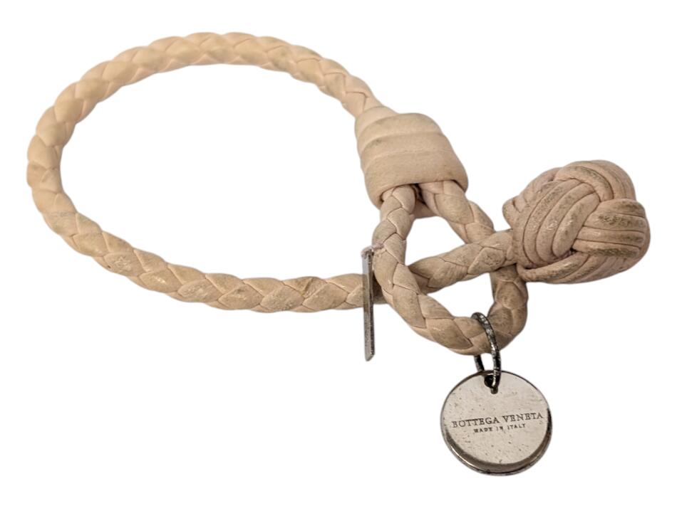 ボッテガヴェネタ ブレスレット レザー レザーブレス 編み込みレザー 薄ピンク ベージュ レディース メンズ シルバー SV925 BOTTEGAVENETA 【中古】