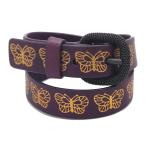 ボッテガヴェネタ ブレスレット パープルパープル レザー Sサイズ 中古 アクセサリー バングル 腕輪 二重 蝶 レディース
