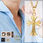 18金 メンズ ネックレス 18k イエローゴールド「Libera Vetta」トラッド クロス ペンダント アズキチェーン【Bセット】 ※45cm 50cm