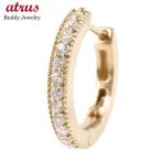 18金 フープ ピアス メンズ 片耳 ダイヤモンド 中折れ式 ピンクゴールド K18 ミル打ち ステンレスバネ入り メンズジュエリー