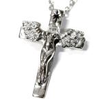ネックレス メンズ ペンダント 十字架 クラウン 王冠 アレルギー対応 メタル細 喜平チェーン ゴシック調 レプリカ Silver925 銀素材