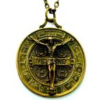 ルード系 イエス キリスト 聖ベネディクトゥス メッセージ アンティークゴールドカラー メンズ ペンダント ネックレス