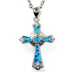 オパール ライトブルー クロス 十字架 クリアジルコニア CZ装飾 メンズ ペンダント ネックレス ベネチアンチェーン付き
