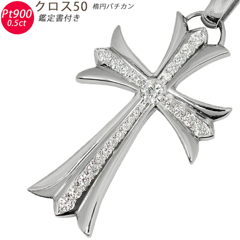 Pt900 クロス50 楕円バチカン 鑑定書付き プラチナ ペンダントトップ ダイヤモンド 0.5ct E SI2 GOOD メンズ ネックレス ori24