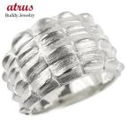 リング メンズ 指輪 シルバー sv925 太め クロコダイル シンプル ピンキーリング ワニ 男性 つや消し 幅広 地金