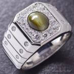 【新春クーポン】メンズリング プラチナ 指輪 クリソベリルキャッツアイ ダイヤモンド Pt950 地金 男性 幅広 ごつい 太め 30代 40代 50代