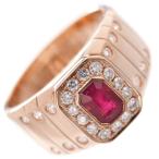 指輪 メンズリング 印台 K18 18kPG 18金 ピンクゴールド ルビー ダイヤモンド エメラルドカット 幅広 刻印入り 刻印入り 鑑別書付き 爆買