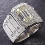 プラチナ リング メンズ 指輪 印台 ダイヤモンド 2.5カラット 幅広 太め Pt950 エメラルドカット 30代 40代 50代