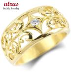 18金 リング ダイヤモンド メンズ 指輪 ゴールド イエローゴールドk18 18k ピンキーリング リング 幅広 透かし ダイヤ 男性 送料無料 人気 セール sale