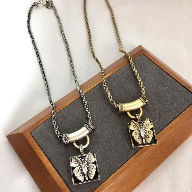 ネックレス レディース メンズ チョーカー 黒 蝶 バタフライ ジルコニア 幾何学模様 麻花チェーン 古金色 古銀色 パンク ヒップホップ 個性的