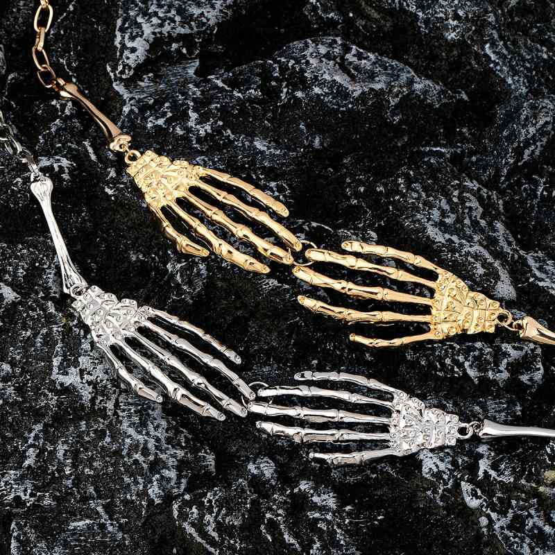 ネックレス メンズ パンク ゴシック ハロウィン スケルトンハンド チョーカー 個性的 ファッション ユニーク 首飾り 合金製 電気メッキ加工 秋冬用 ゴールド シルバー パーティー イベント コスプレアクセサリー