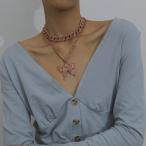 【並行輸入品】2ピースキット 多連バタフライネックレスペンダント キューバリンクチェーンセット ラグジュアリーラインストーンチョーカー レディー