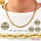 18金 ペーパークリップ ネックレス チェーン 幅5.2mm 50cm 60cm 70cm K18 YG 角アズキ 中空 リンク メンズ RMジュエリー