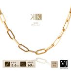 18金 メンズ ネックレス イエローゴールド 18k 「Kiki Hollow チェーン」3.6mm 幅 60cm[K18 スパルタカス 長小豆 長角 クリップ ジュエリー 中空 3.5mm 4mm K10]