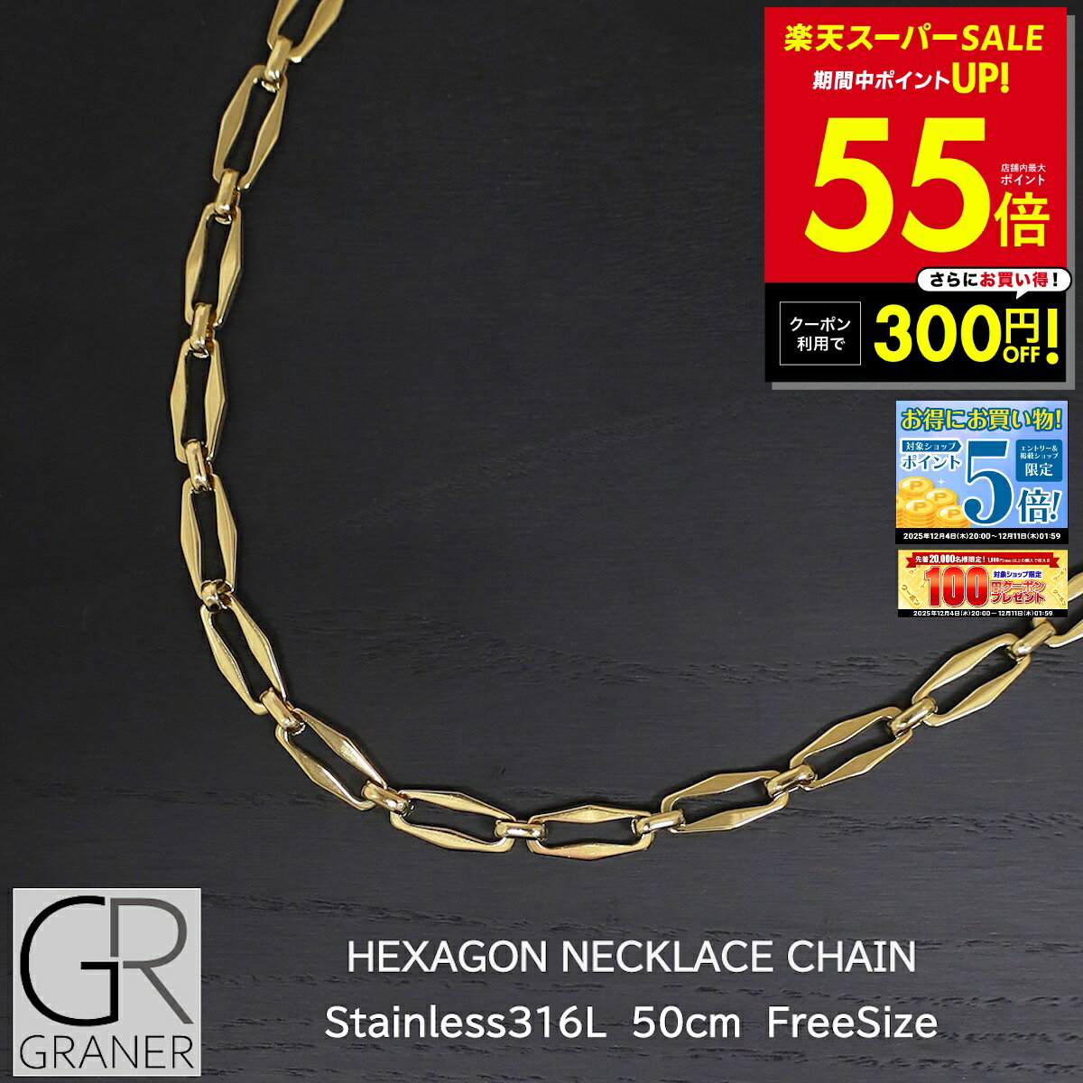 【P最大55倍&クーポン!! 〜12/11 1:59】メンズネックレスチェーン メンズネックレス ステンレス ネックレス チェーン メンズ ヘキサゴン 50cm シンプル ゴールド 金 金属アレルギー 対応 graner GR-002 p10