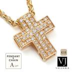 VJ【ブイジェイ】 18金 メンズ ネックレス K18 ダイヤモンド イエローゴールド「ベイビー Magnifico クロス ペンダント」ダブルロロ チェーン セット※45cm.50cm