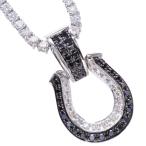 ネックレス メンズ プラチナ ダイヤモンド 12カラット 55cm テニスネックレス ブラックダイヤモンド 馬蹄 ホースシュー ペンダント 爆買