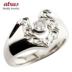 リング メンズ プラチナ 印台 ハワイアンジュエリー pt900 指輪 ダイヤモンド 一粒 馬蹄 ホースシュー スクロール ダイヤ 幅広