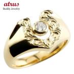 リング メンズ ハワイアンジュエリー ダイヤモンド イエローゴールドk18 スクロール 印台 指輪 一粒 ダイヤモンド 18金 蹄鉄 幅広