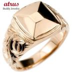 ハワイアンジュエリー メンズ リング ピンクゴールドk10 印台 幅広 指輪 10金 ハワイアン スクロール マイレ トレジャーハンター