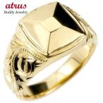 ハワイアンジュエリー メンズ リング イエローゴールドk10 印台 幅広 指輪 10金 ハワイアン スクロール マイレ トレジャーハンター