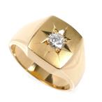 K18YG イエローゴールド 印台 リング・指輪 ダイヤモンド0.29ct 19号 18.3g メンズ 中古