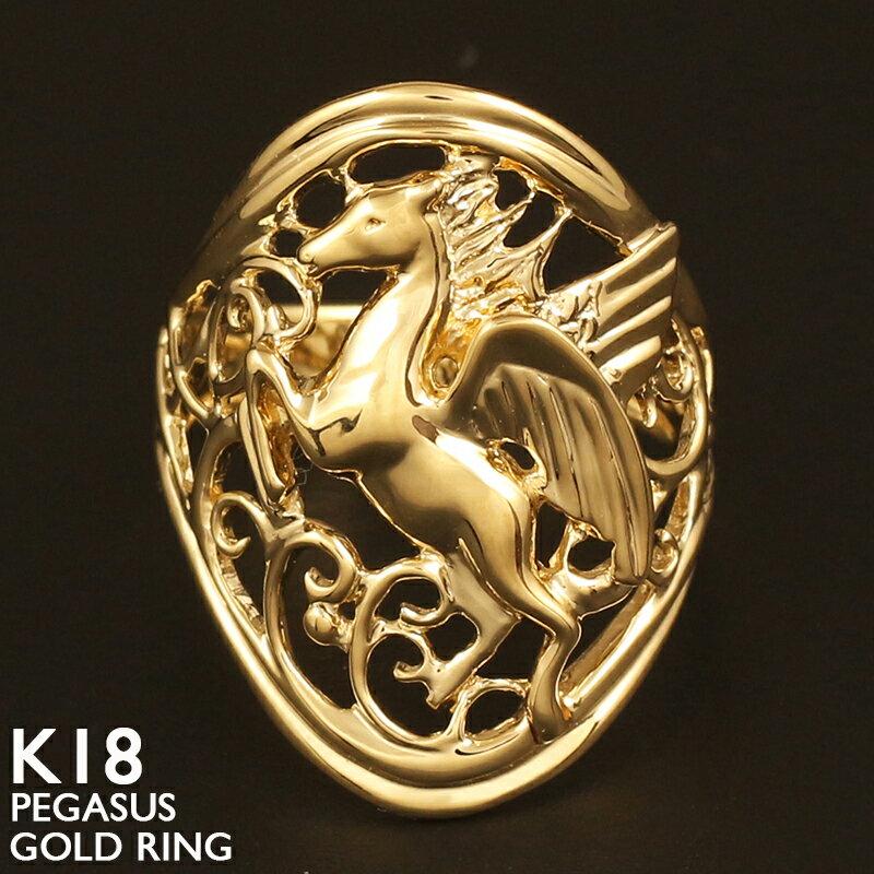 18金 リング ペガサス レディース メンズ 指輪 K18 18K 華奢 シンプル イエローゴールド ピンクゴールド プラチナ スキンジュエリー 透かしリング 天馬 女性用 男性用 ワイド ユニセックス 男女兼用 デザインリング 地金 ジガネ