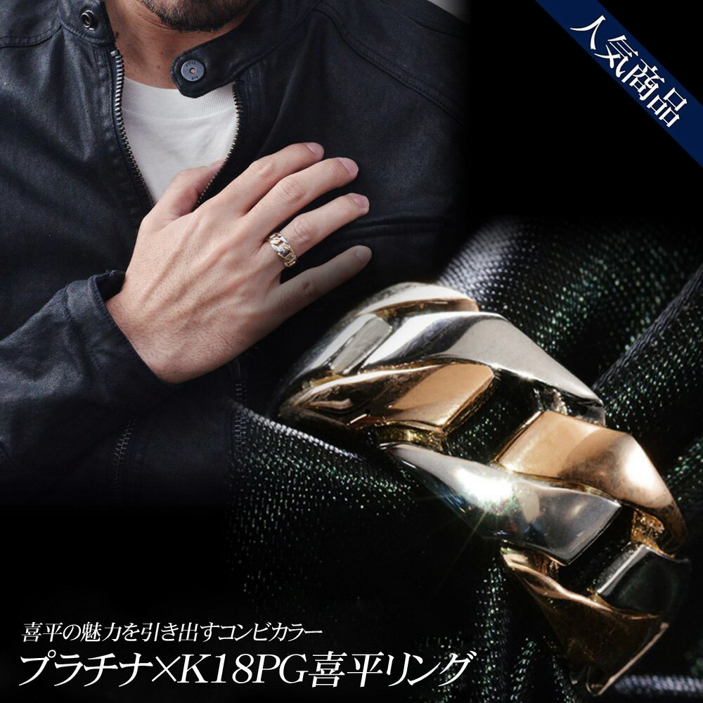 指輪 メンズ 喜平 リング 18金 K18PG ピンクゴールド プラチナ コンビ Pt900 幅広 地金 日本製 刻印入り ごつい 太め シンプル 30代 40代 50代 【人気アイテム】