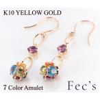 ピアス レディース アレルギー対応 ニッケルフリー K10YG 10金 イエローゴールド アミュレット 天然石 7色 お守り マルチカラー カラフル ロンデル フックピアス