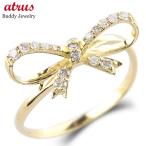 18金 リボン リング ダイヤモンド 0.2ct レディース お守り 指輪 ゴールド 18K 金 ピンキーリング 婚約指輪 シンプル おしゃれ 人気 送料無料 セール sale
