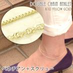 2連チェーンのアンクレット ベネチアン+スクリュー アンクレット レディース 10金イエローゴールド K10YG