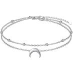 【並行輸入品】Star Moon レイヤードアンクレット 925スターリングシルバー アンクレット レディース ガールズ 調節可能なビーズ 三日月アン