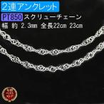 プラチナ アンクレット レディース 2連 全長22cm 23cm pt850 スクリューチェーン シンプル 重ね着け風 地金のみ チェーンだけ チェーンのみ 女性 ジュエリー ギフト プレゼント 人気 おしゃれ 普段使い