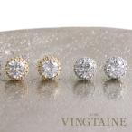 レディース ネジ式 イヤリング イアリング キュービックジルコニア 簡単付け外し ミル打ち石台 華やかパヴェ きれいめ 豪華