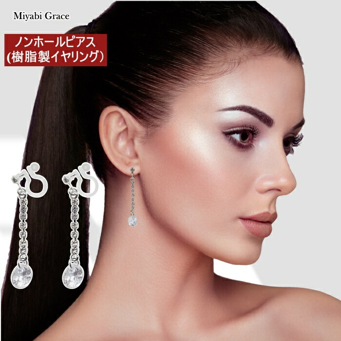 ノンホールピアス イヤリング レディース 人気 痛くない クリア キュービックジルコニア 人工ダイヤモンド 揺れる ティアドロップ 小ぶり 華奢 クリスタル CZ しずく型 ジルコニア 樹脂製 イヤリング ノンホールピアス 上品 大人 華やか ミヤビグレース 30代 40代 50代
